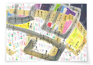 第386回「夜のミュージシャン」M.かずやさん 第385回「相模の大凧」YUTAKAさん 第384回「増殖する鳥」エイトさん 第383回「ゴリラのまなざし」りほさん 第382回「夢の枝豆」ひろゆきさん 第381回「青いネコ」知男さん 第380回「三匹」みくさん 第379回「海のマーチ」寛之さん 第378回「SEKAI NO OWARI」あんどうさん 第377回「一人ぼっちの唐辛子」ケントさん 第376回「秋」直さん 第375回「赤い仔象」あかねさん 第374回「酔っ払ったサメ親父」淳さん 第373回「スイカ星」あいさん 第372回「音楽室の楽聖」陽介さん 第371回「まち」よこおさん 第370回「中秋の名月」かずやさん 第369回「永遠のケーキ」TARO画伯 第368回「コーラと書家」モリヤマくん 第367回「植物と昆虫の増殖する世界」翔太さん 第366回「三つの顔」蘭さん 第365回「夏をゆく人々」春生さん 第364回「夏の夜」としきさん
